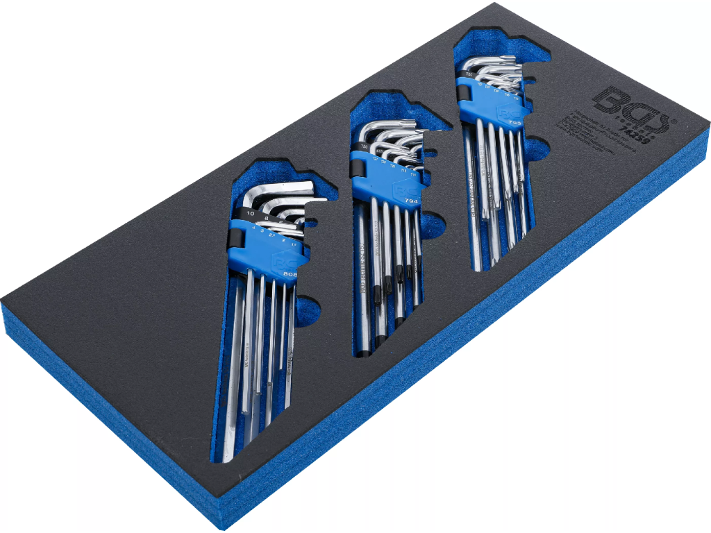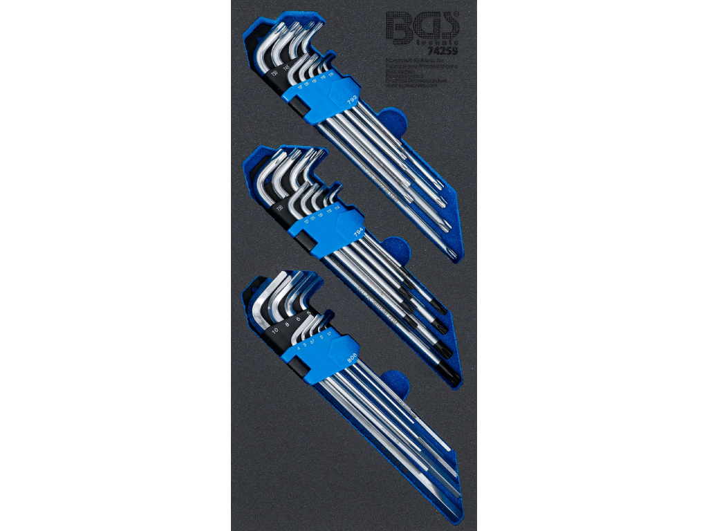 Sada Imbus a Torx klíčů v pěnové výplni, extra dlouhé, 27 ks - BGS 74259