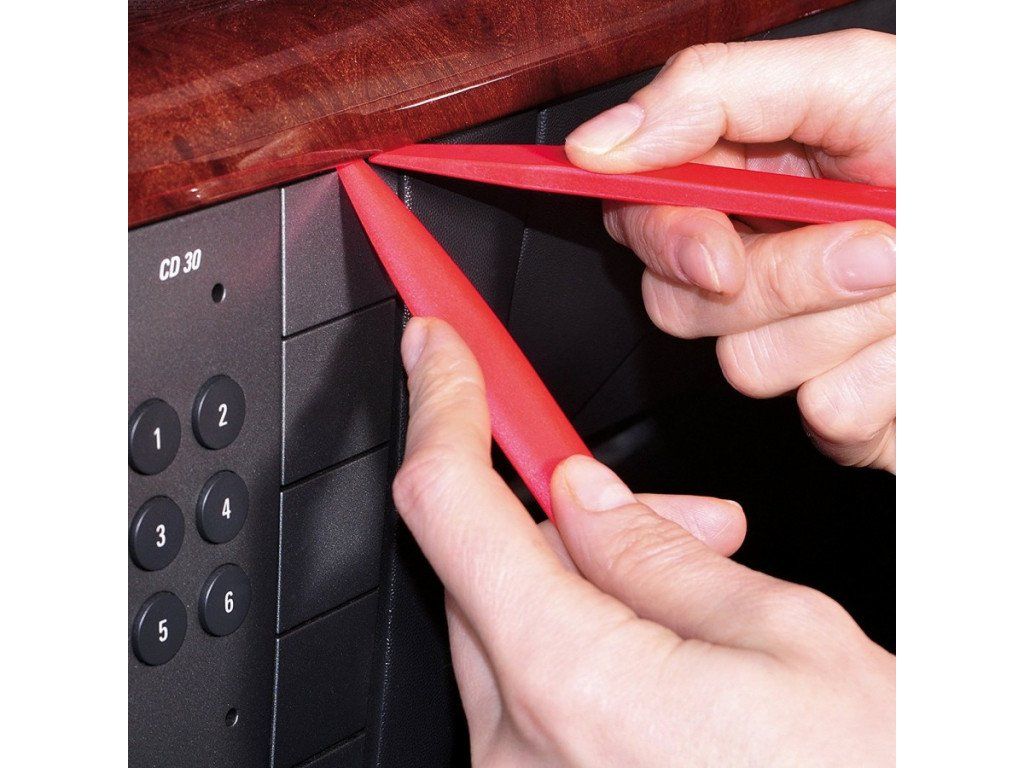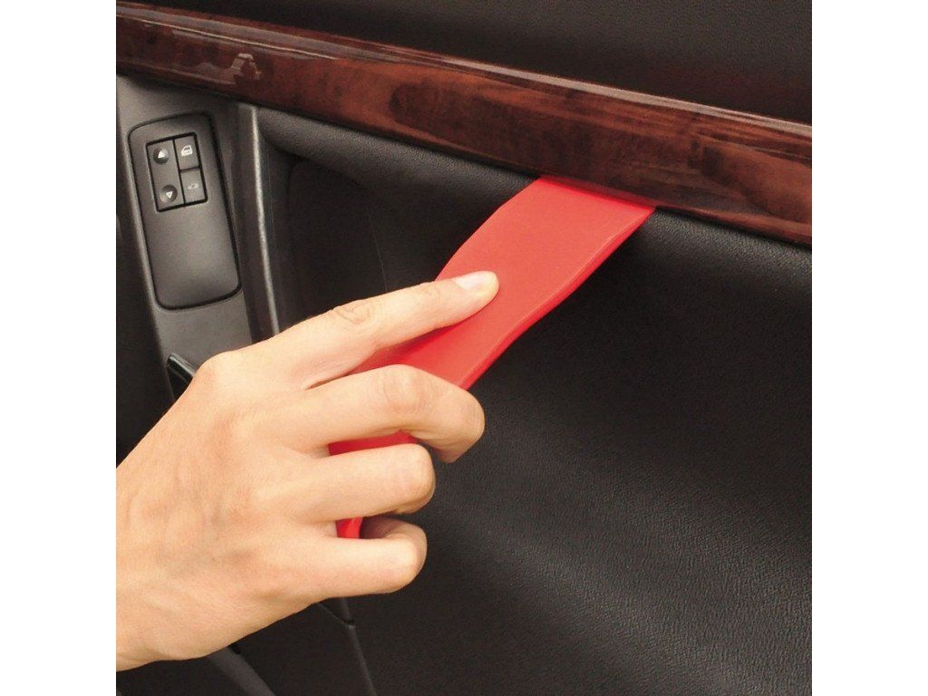 Sada obsahuje 5 nástrojů se speciálním profilem na demontáž vnitřních a vnějších příchytek plastových a čalouněných částí automobilů zajišťují bezpečnou práci a velkou úsporu času. Materiál v kombinaci s profilem nástrojů je navržený tak, aby nedošlo k poškození laku vozu, čalounění a pochromování. Pro dlouhou životnost jsou přípravky sady na demontáž čalounění vyrobeny z pružného plastu.