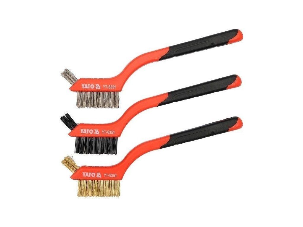 - Ergonomicky formovaná plastová rukojeť s ocelovými, mosaznými a nylonovými štětinami