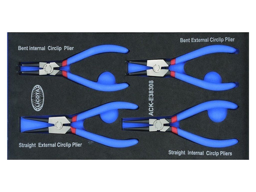 Sada kleští na pojistné kroužky v pěnové výplni, 4 ks - LIACKE38308