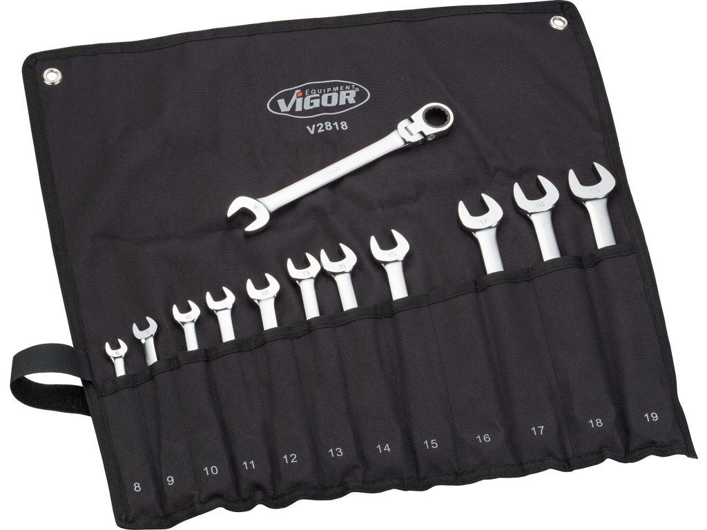 Sada kloubových ráčnových očkoplochých klíčů, 12 dílná VIGOR V2818