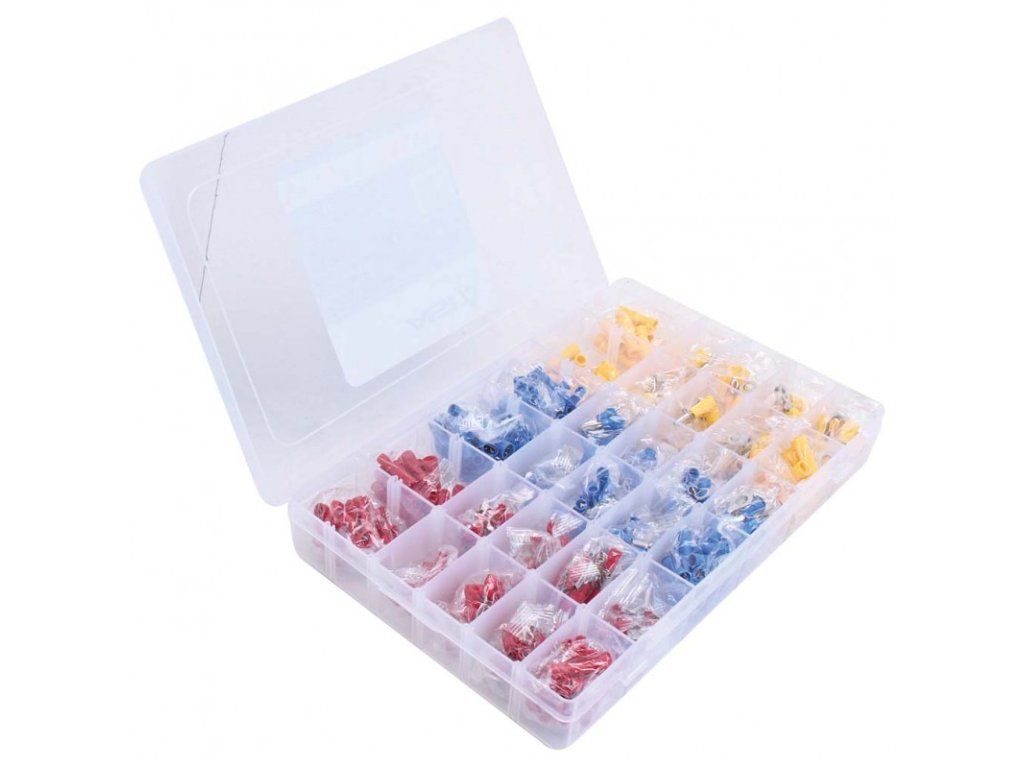 V sadě se nachází celkem 480 ks konektorů, které jsou přehledně roztřízené a uložené v plastovém boxu.