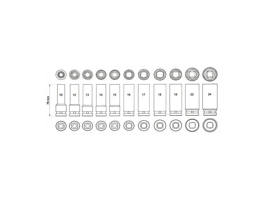 - 10, 12, 13, 14, 15, 16, 17, 18, 19, 22, 24 mm.