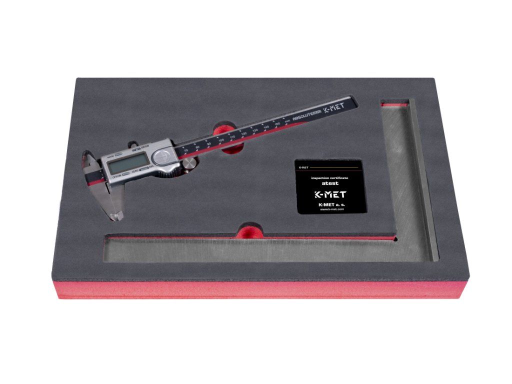Sada obsahuje:6040-05-150 - Digitální posuvné měřítko K-MET ABSOLUTE ZERO, 150/40 mm, DIN 862