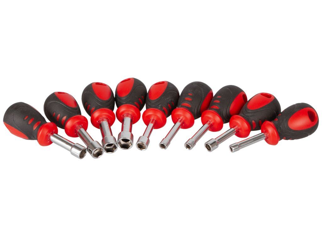 Konstrukce nástrojů kombinuje ocelové nástavce s šestihranným profilem a ergonomicky tvarované rukojeti s protiskluzovým povrchem pro přesné vedení nástroje.