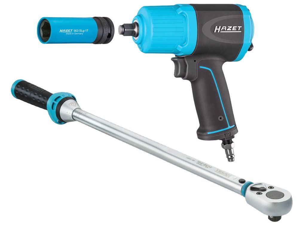 Profesionální sada HAZET pro přesné utahování kol a další aplikace v autoservisech, pneuservisech i dílnách. Kombinuje momentové utažení a rychlé povolování či dotahování.