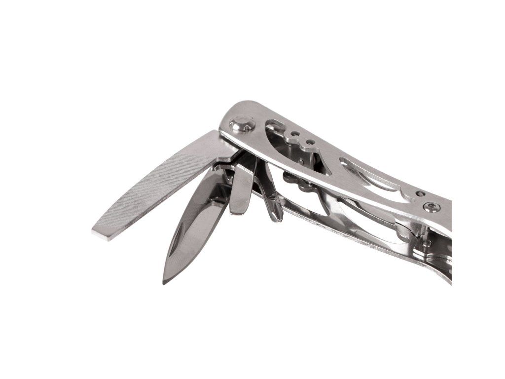 Multifunkční kleště jsou celokovové a vybavené řadou užitečných funkcí. Mimo samotných kleští nechybí pilka, nožík, otvírák, šroubováky a řada dalších věcí.