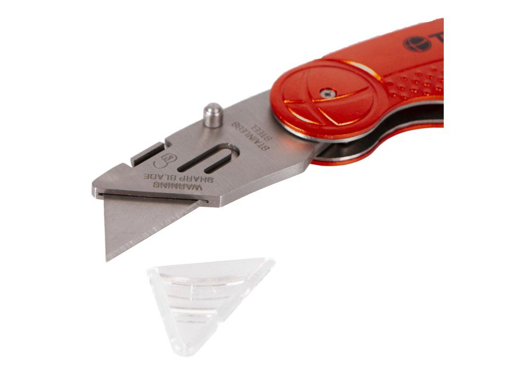 Zavírací nůž s vyměnitelnou čepelí je celokovový a perfektně padnoucí do ruky. Možnost zavření nože zvyšuje jeho bezpečnost a skladnost.