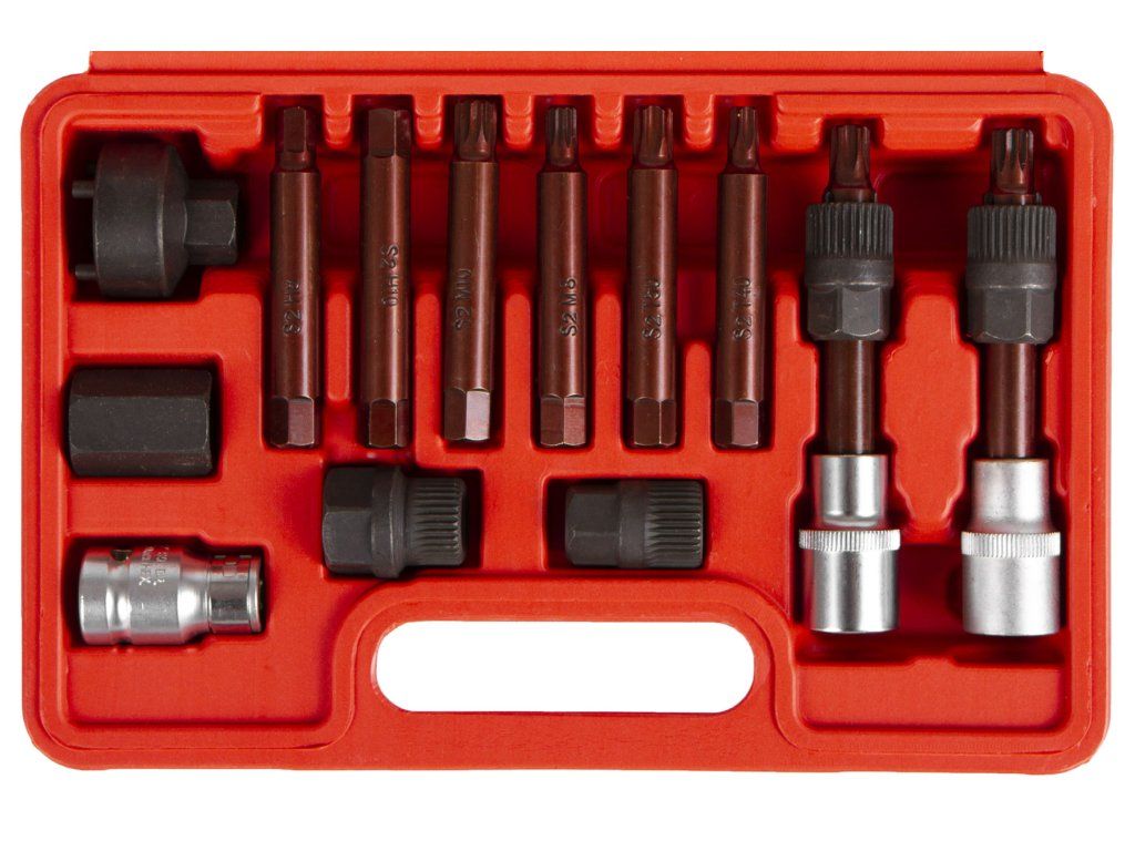 Sada 13 ks klíčů, adaptérů a hlavic pro montáž a demontáž alternátorů: