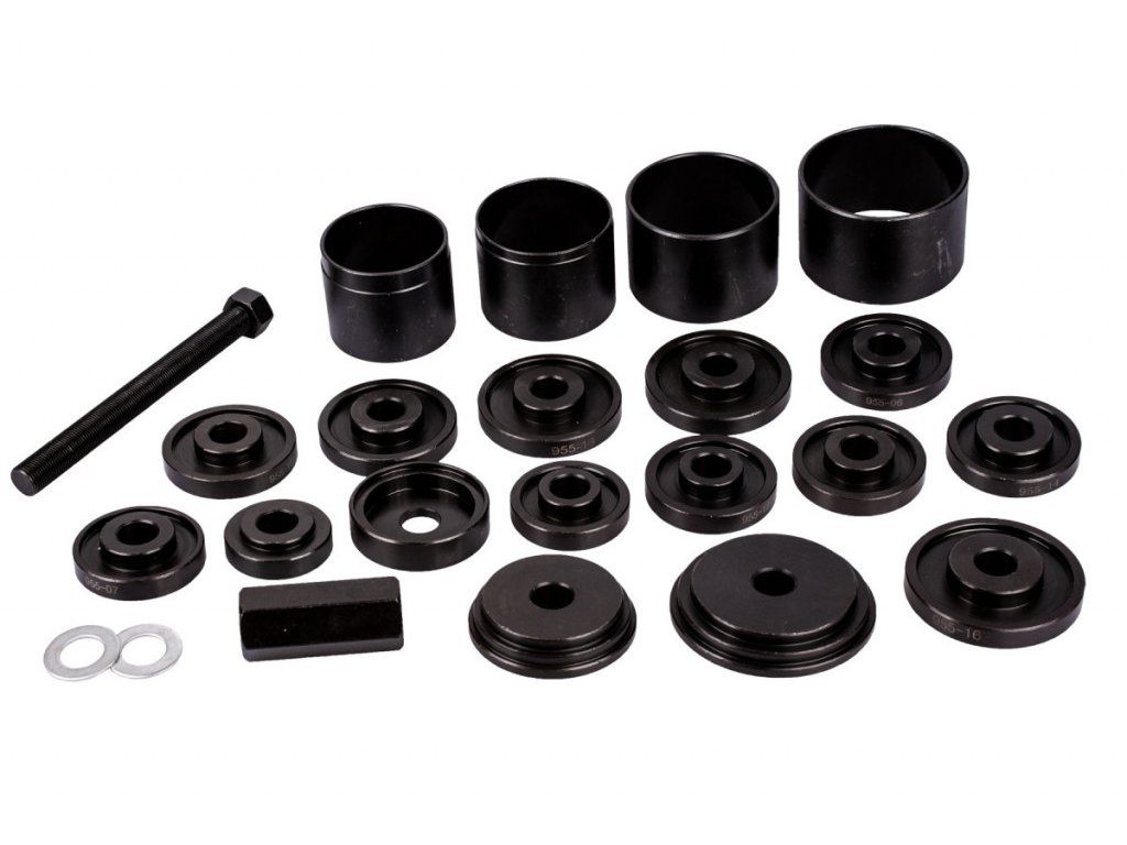 Univerzální sada na demontáž a montáž ložisek nabízí výběr z různých velikostí misek a distančních pouzder. Umožňuje použití na většině prodávaných automobilů.