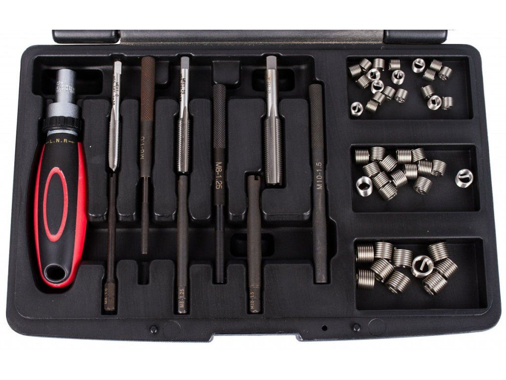- sada obsahuje 3 typy závitových vložek: 20 ks M6 x 1.0, 15 ks M8 x 1.25, 10 ks M10 x 1.5