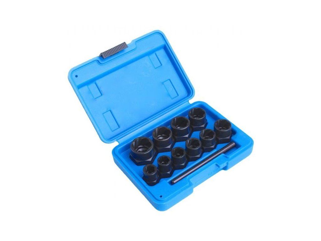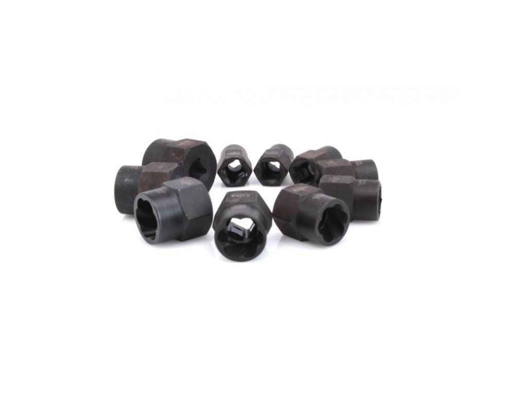 Sada speciálních nástrčných klíčů pro demontáž poškozených hlav šroubů nebo matic.