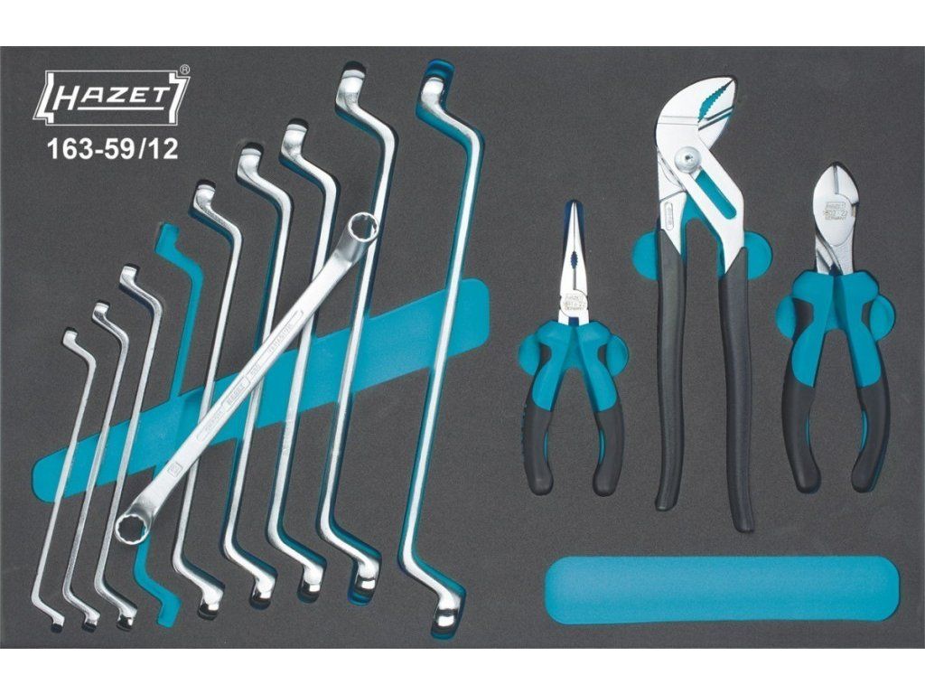 Sada nářadí, oboustranné očkové klíče, kleště 163-59/12 Hazet
