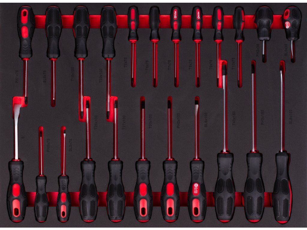 | 5 ks | Šroubováky ploché: 6 x 38, 3 x 75, 5 x 75, 6 x 100, 8 x 150 mm |