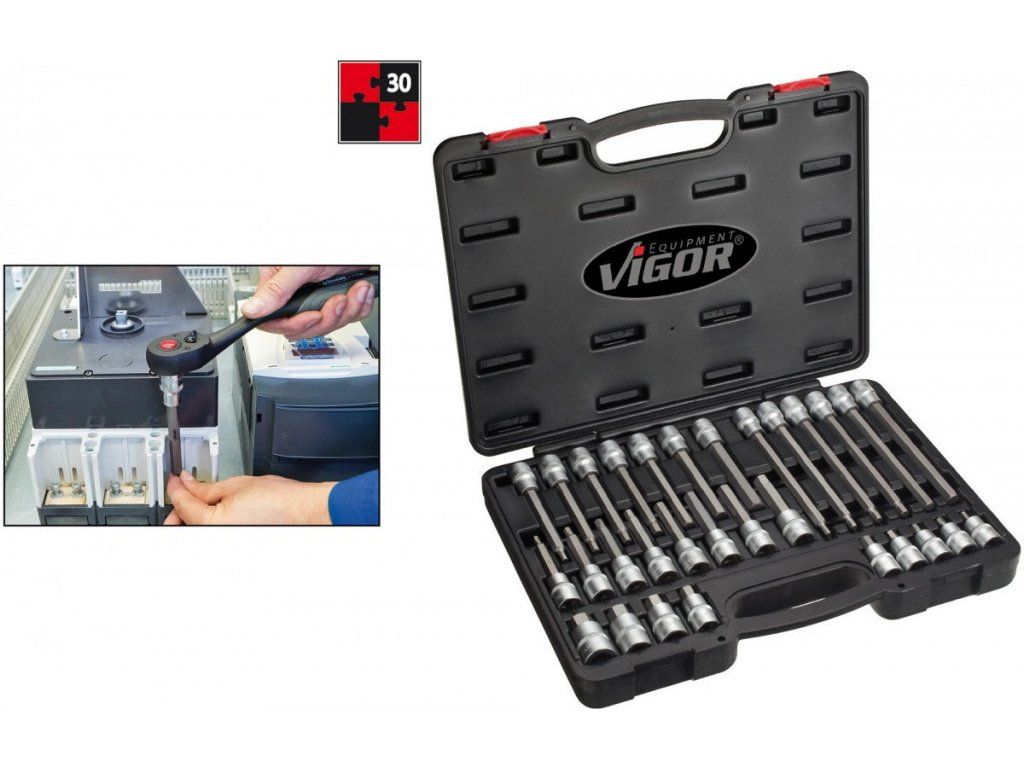 Profesionální sada nástrčných hlavic 1/2" s kovanými hroty. - Kvalitní německá značka VIGOR.