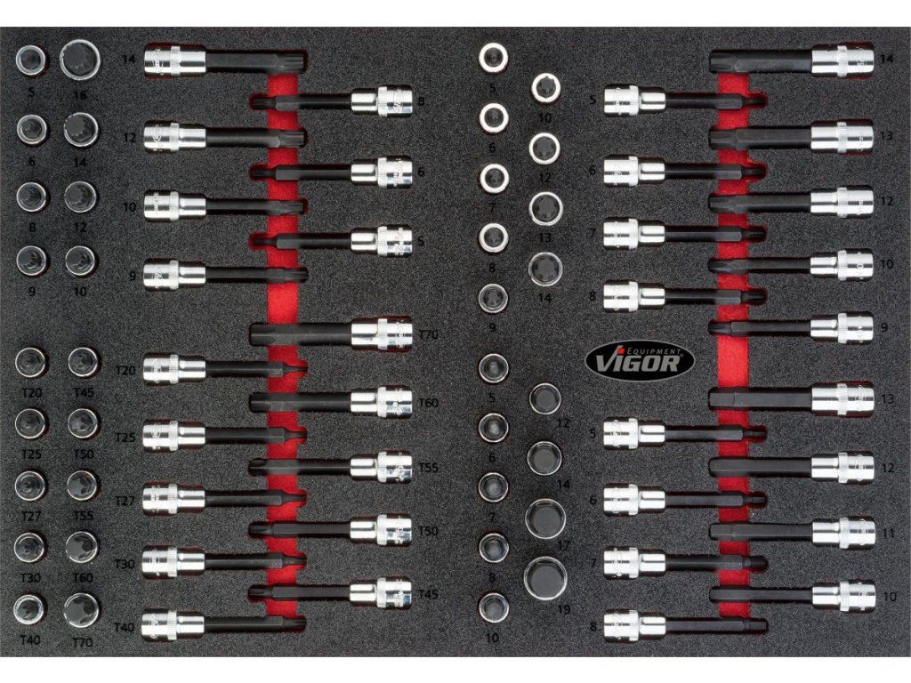 Sada nástrčných hlavic s bity 1/2" ve výplni do dílenských vozíků, 70 dílů - V4753