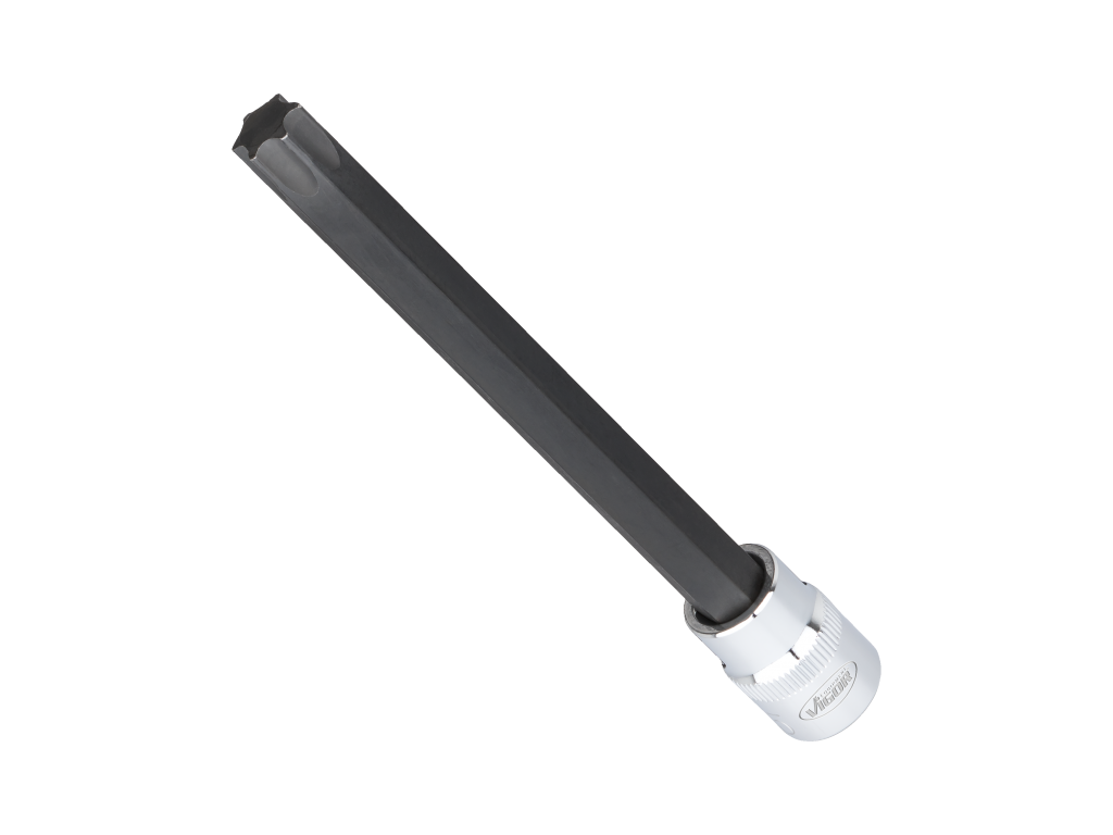 Sortiment nástrčných hlavic TORX (samec) v kufru o velikostech T20 - T70 v různých délkách hlavic: 48, 93, 133 a 193 mm.