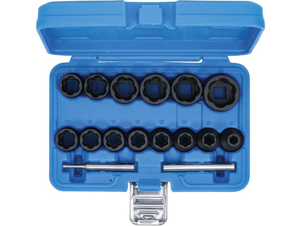 Sada nástrčných klíčů na poškozené šrouby 1/2", 8 - 27 mm, 16 ks - BGS
