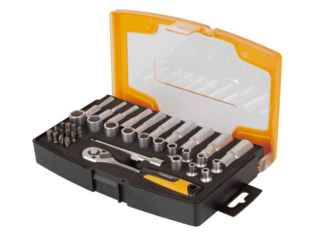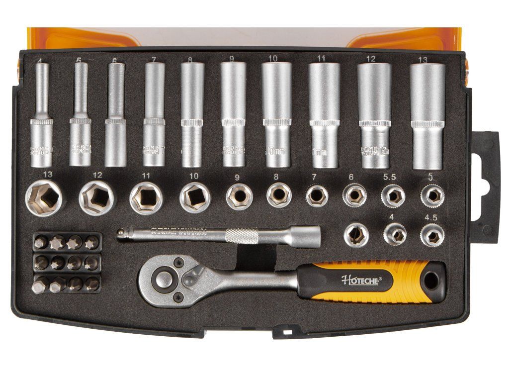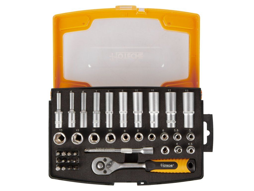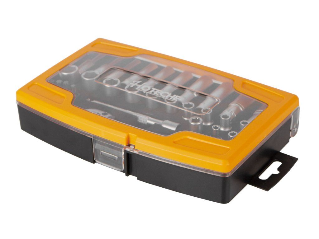 Sada bitů a nástrčných klíčů 1/4" v plastovém boxu od značky Hoteche.