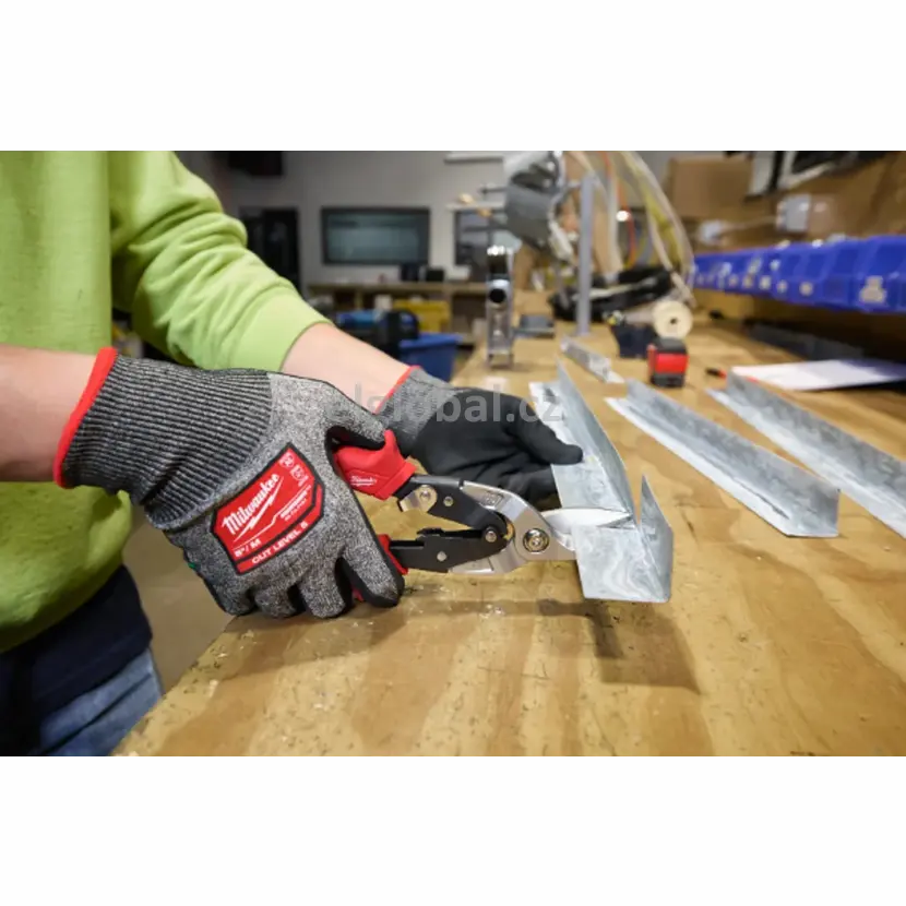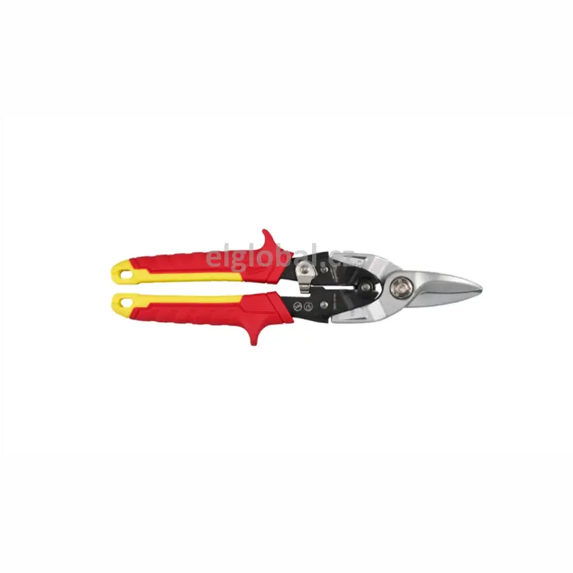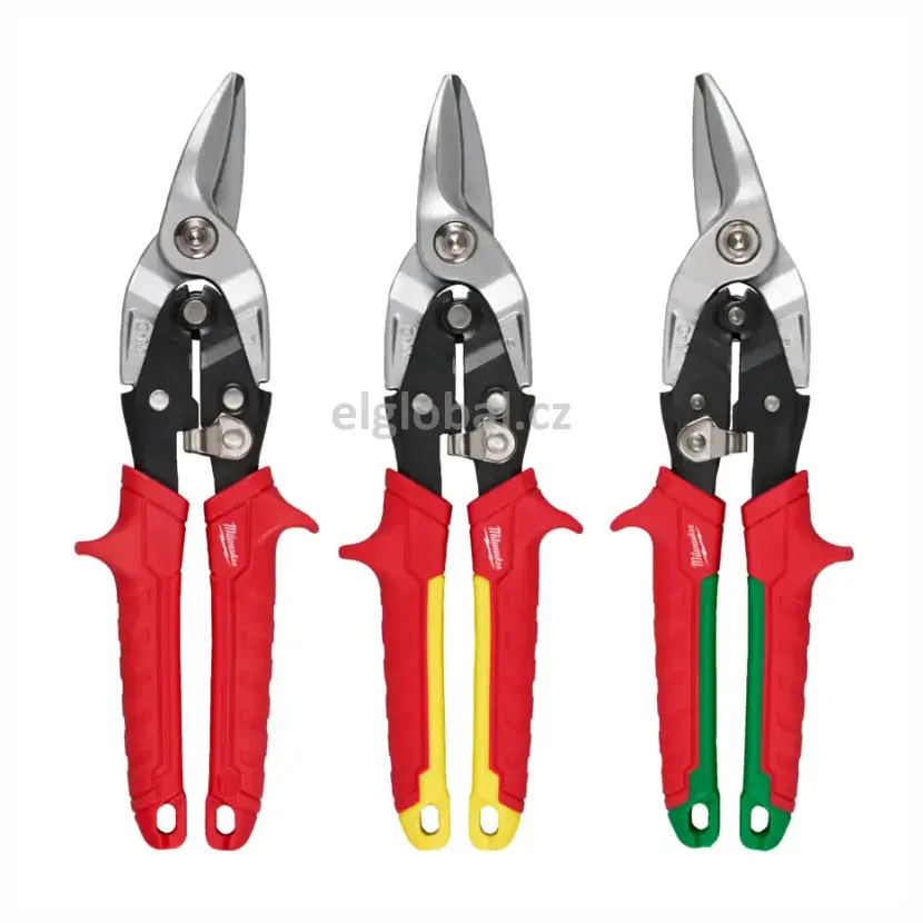 Nůžky na plech: pro krátké, rovné a zakřivené řezy. Ideální pro střihy s malým poloměrem a zářezy. Otvory pro palec a ukazováček pro větší pohodlí a menší únavu. Umožňují uživateli snadno prorážet plech s menším rizikem pořezání
