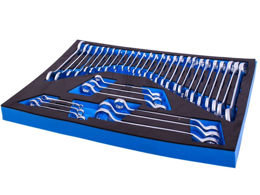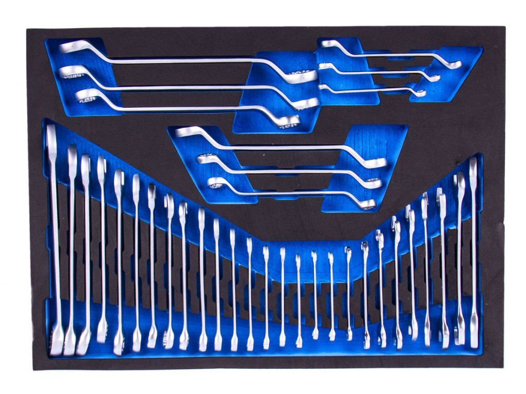 Sada očkoplochých, plochých a vyhnutých očkových klíčů ve vložce do dílenského vozíku, 36 dílů - VV036SK01