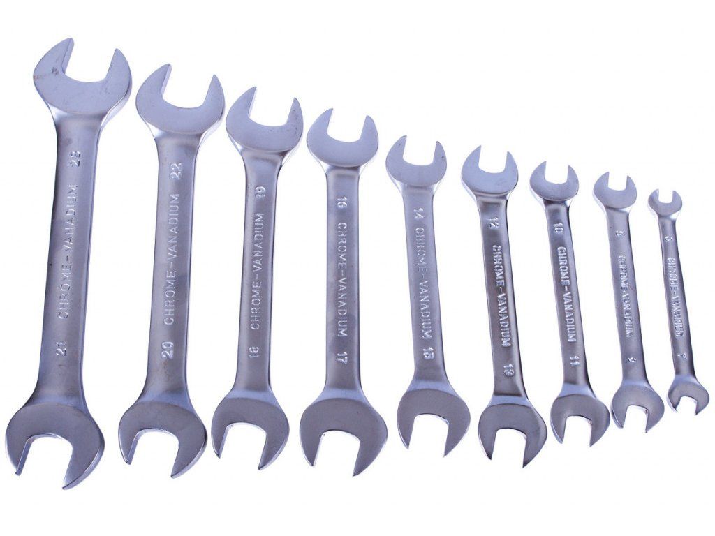 Ploché klíče: 6 - 7; 8 - 9; 10 - 11; 12 - 13; 14 - 15; 16 - 17; 18 - 19; 20 - 22; 21 - 23 mm.