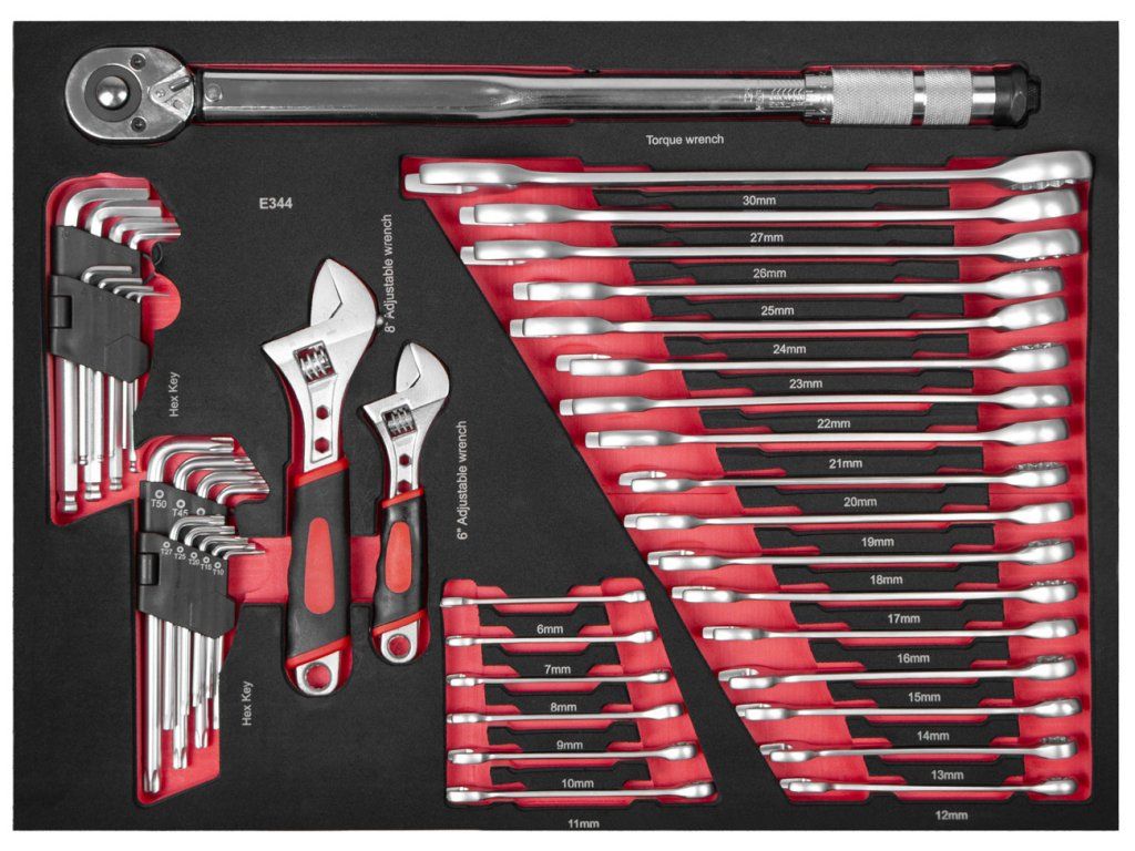 Sada očkoplochých klíčů a momentového klíče v pěnové výplni, je ideální pro snadný přístup k přehledně uspořádanému nářadí. Sada obsahuje 44 kusů nářadí, které pokryjí široké spektrum běžných oprav a údržby.