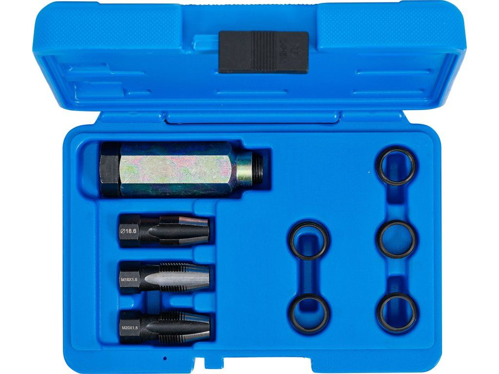 V sadě nalezne výstružník Ø 18,6 mm pro vystružení závitů lambda sondy, závitníky M20 x 1,5 mm a M18 x 1,5 mm.