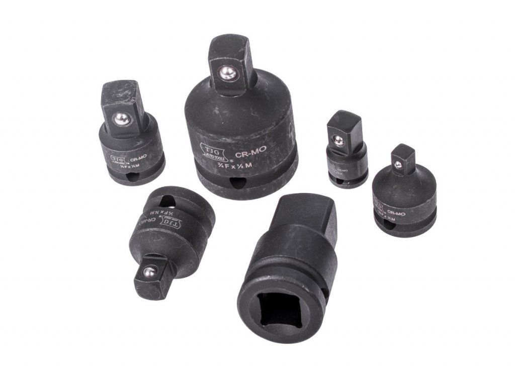 Profesionální sada 6 ks kovaných adaptérů / redukcí pro pneumatické rázové utahováky.