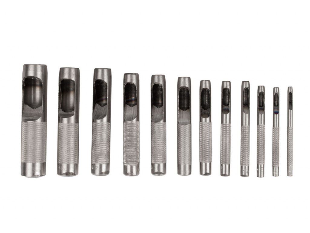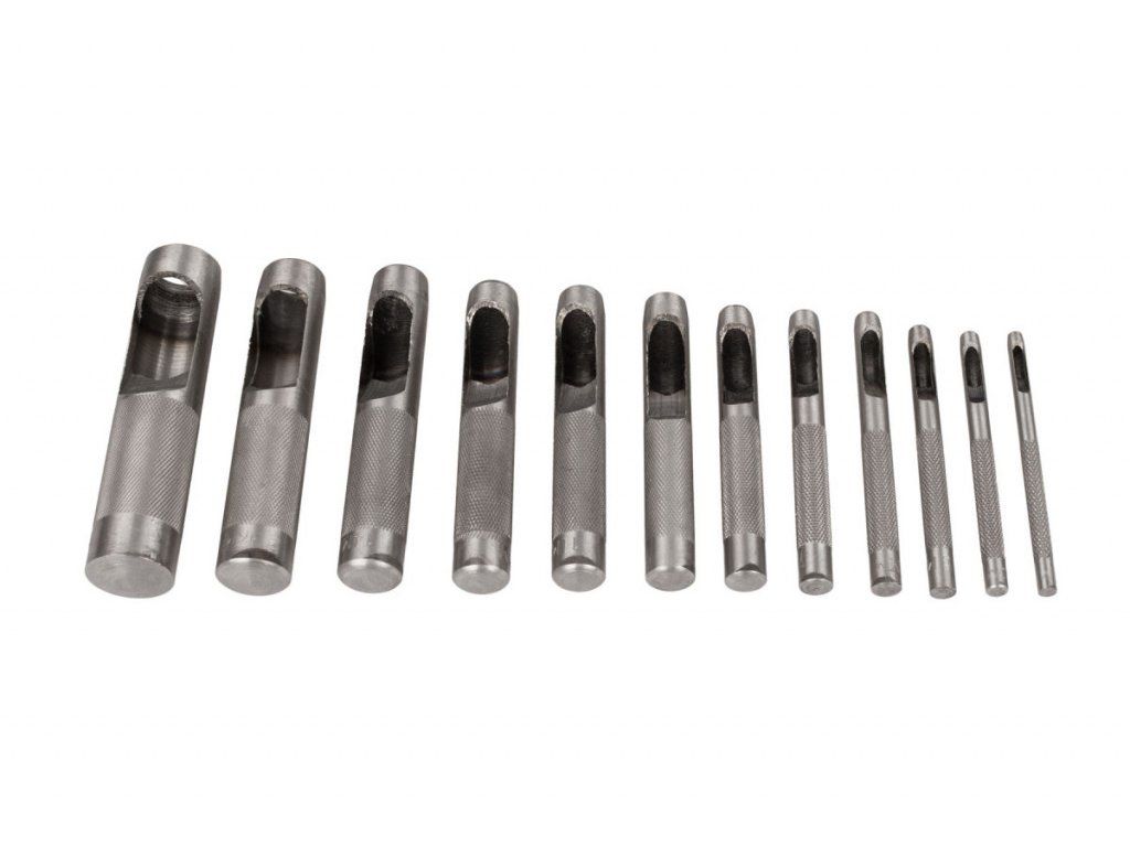 Kvalitní sada průbojníků / děrovačů na kůži vhodné také na materiály jako je PVC , kůže, pryž, těsnící papír, tvrdé lepenky a pod. V sadě je 12 ks o velikostech 3 - 19 mm.