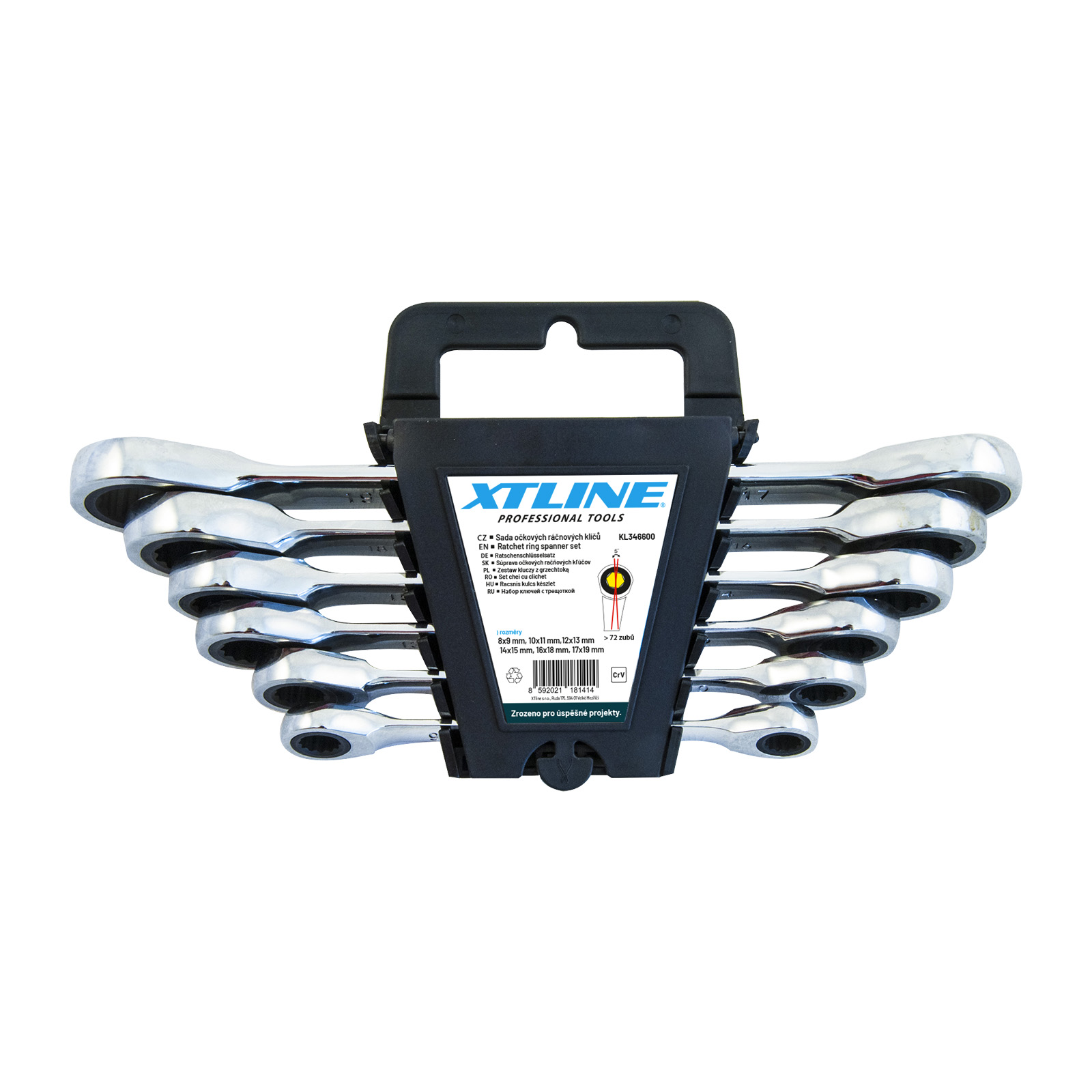 Parametry produktu  XTLINE Sada ráčnových klíčů oboustranných 72 zubů, 7 dílů | 8-19 mm, plastový držák