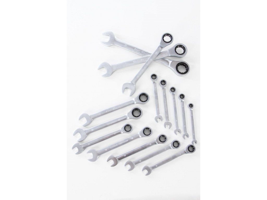Sada 15 ks ráčnových očkoplochých klíčů v pěnové výplni do dílenského vozíku o velikostech: