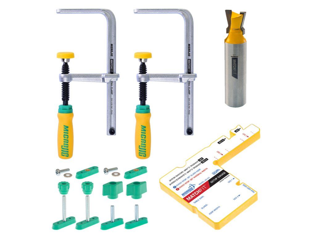 Sada rybinových svěrek MICROJIG MATCHFIT PRO s frézou a příslušenstvím