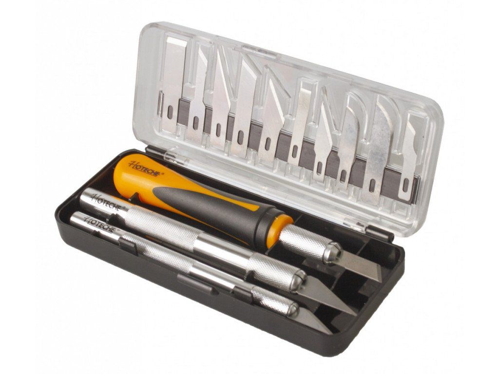 Sada skalpelů od značky Hoteche by neměla chybět v žádné garáži nebo dílně. Tato sada najde uplatnění například v modelářství, nebo řezbářství.