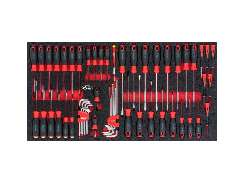 Sada šroubováků 60 dílů ve výplni do dílenských vozíků - V5170