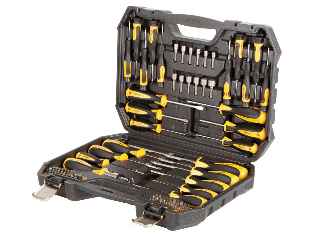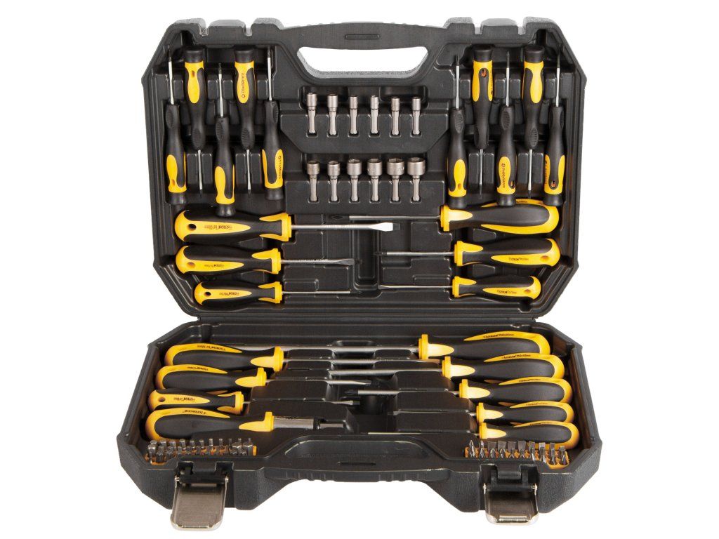 Křížové šroubováky: 7 ks (PH0 × 75 mm, PH0 × 100 mm, PH1 × 75 mm, PH1 × 100 mm, PH2 × 100 mm, PH2 × 150 mm, PH3 × 200 mm)