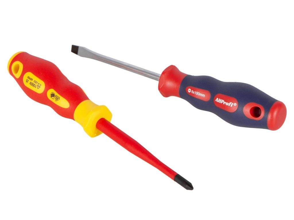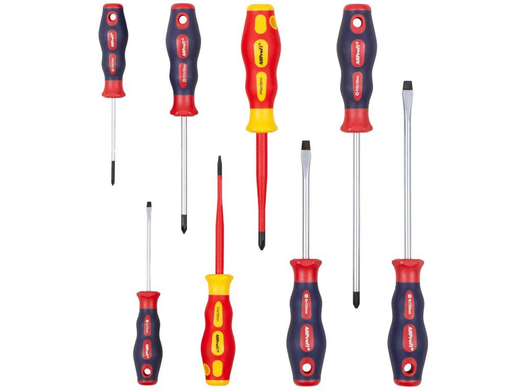 Balení kombinuje klasické šroubováky s dvojicí izolovaných VDE šroubováků pro práci pod napětím do 1000 V.