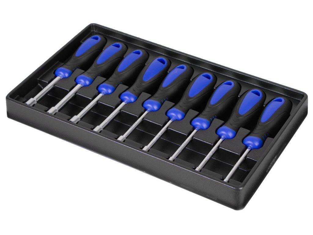 Tato sada šroubováků na matice od značky Licota obsahuje 9 kusů s různě velkými dříky, které jsou vhodné pro práci s maticemi různých rozměrů. Šroubováky jsou vyrobeny z vysoce kvalitní CrV (chrom-vanadiové) oceli, která zajišťuje dlouhou životnost a odolnost vůči opotřebení. Díky ergonomickým rukojetím je práce s nimi pohodlná a efektivní.