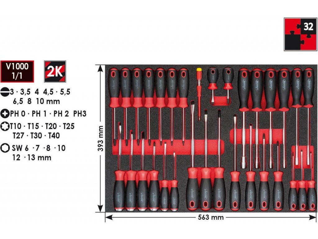 Sada šroubováků ve výplni do dílenských vozíků, 32 dílů - V4230