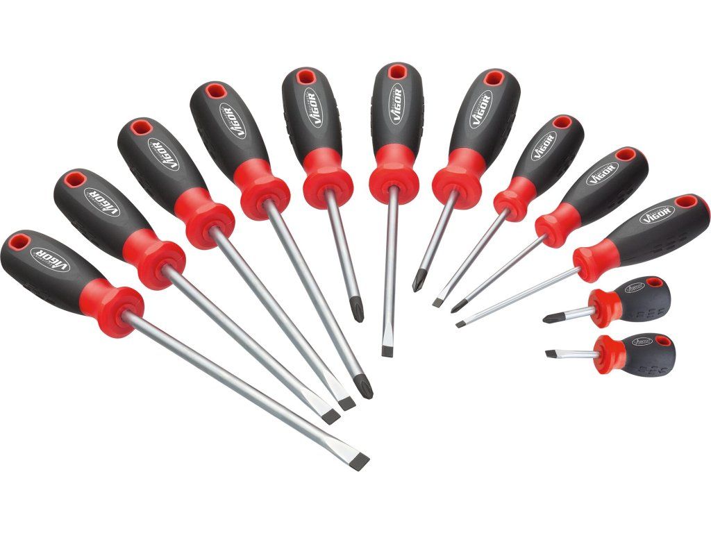 Sada plochých a křížových šroubováků je určena pro běžné i profesionální montážní práce v dílně, servisu i domácnosti.