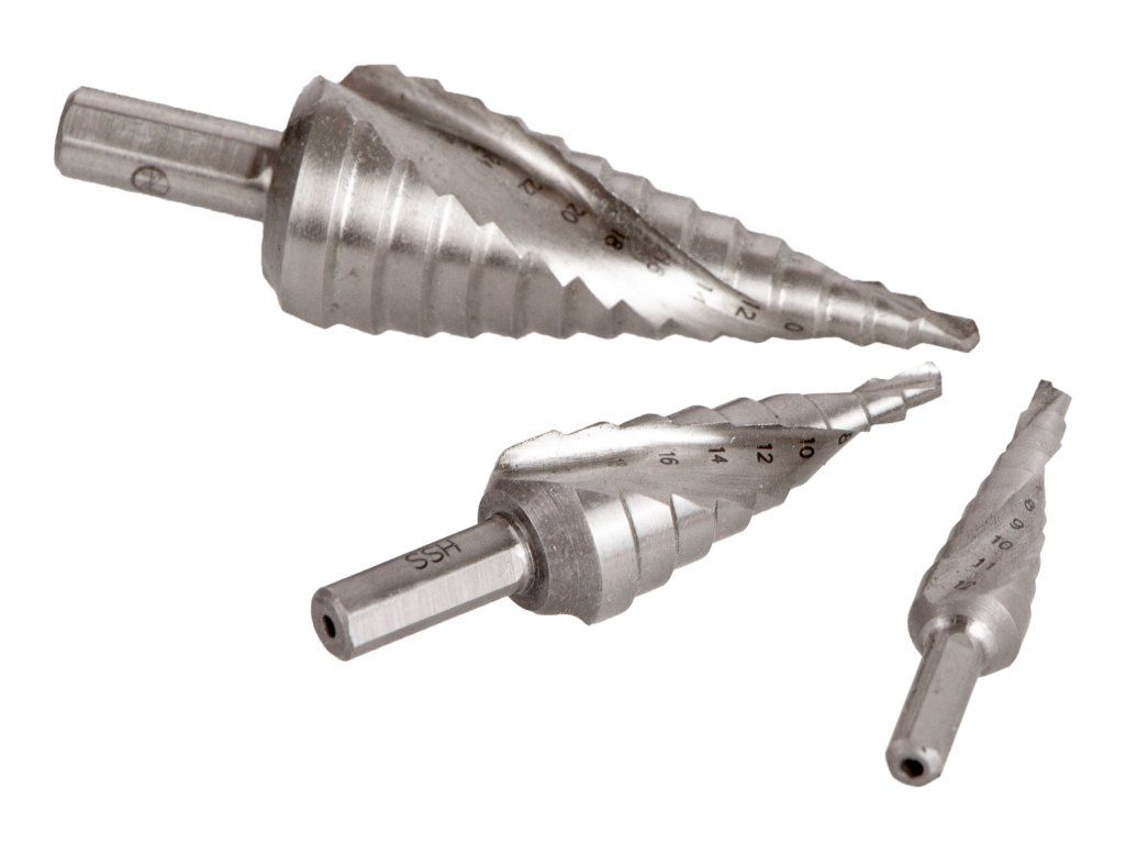 Stupňovitý vrták využijete pro vrtání běžných typů průmyslových plastů a kovu nebo pro vrtání ocelových desek.
