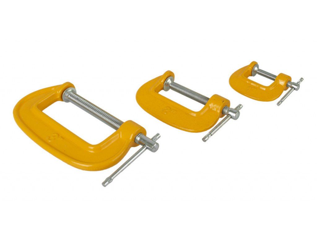 Sada stolařských svěrek 3 ks o velikostech 25 mm, 50 mm a 75 mm.