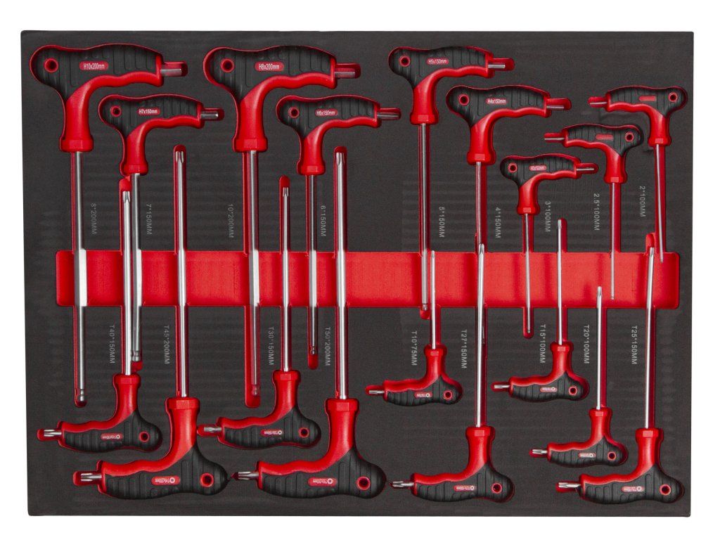 Sada TORX a IMBUS T-klíčú, 18 ks v pěnové výplni do dílenského vozíku.