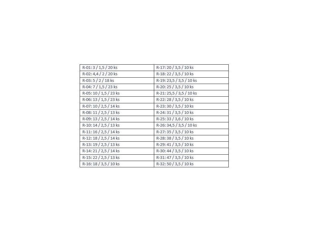 - Jednotlivé průměry těsnění naleznete v podrobnějších informacích o výrobku.