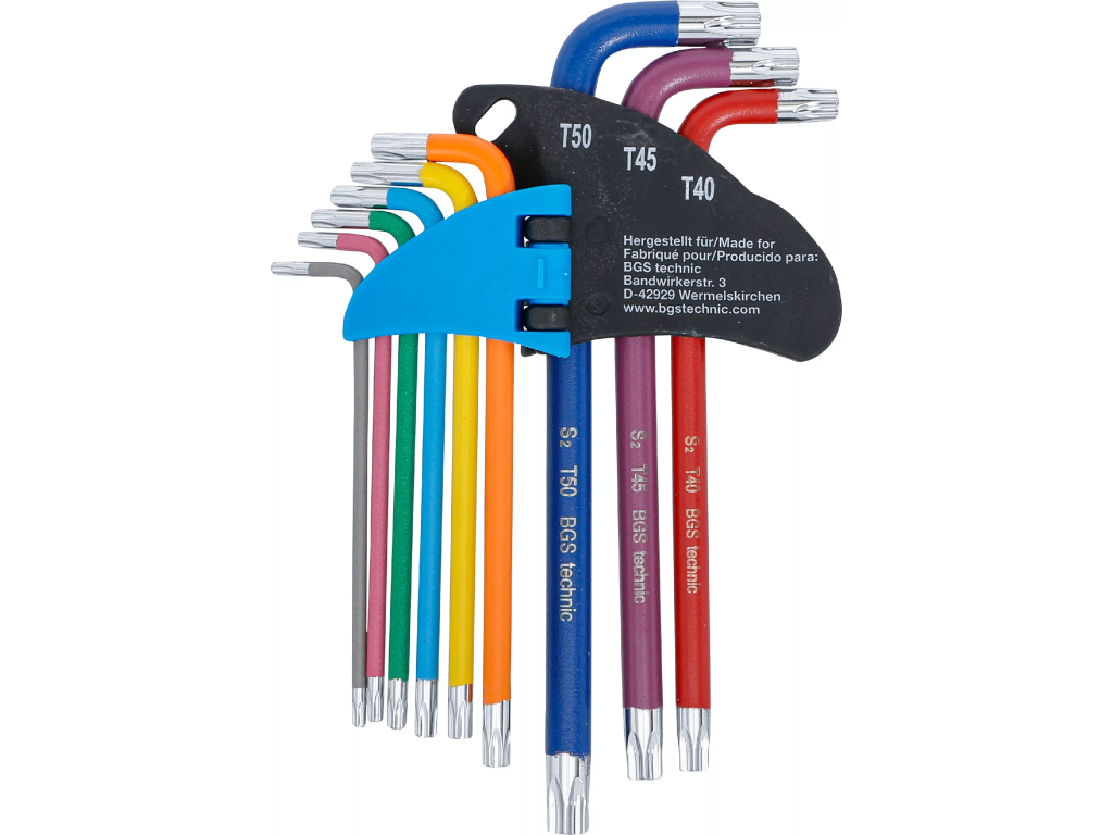 Sada zahnutých klíčů | vícebarevné | T-profil pro Torx | 9dílná | BGS