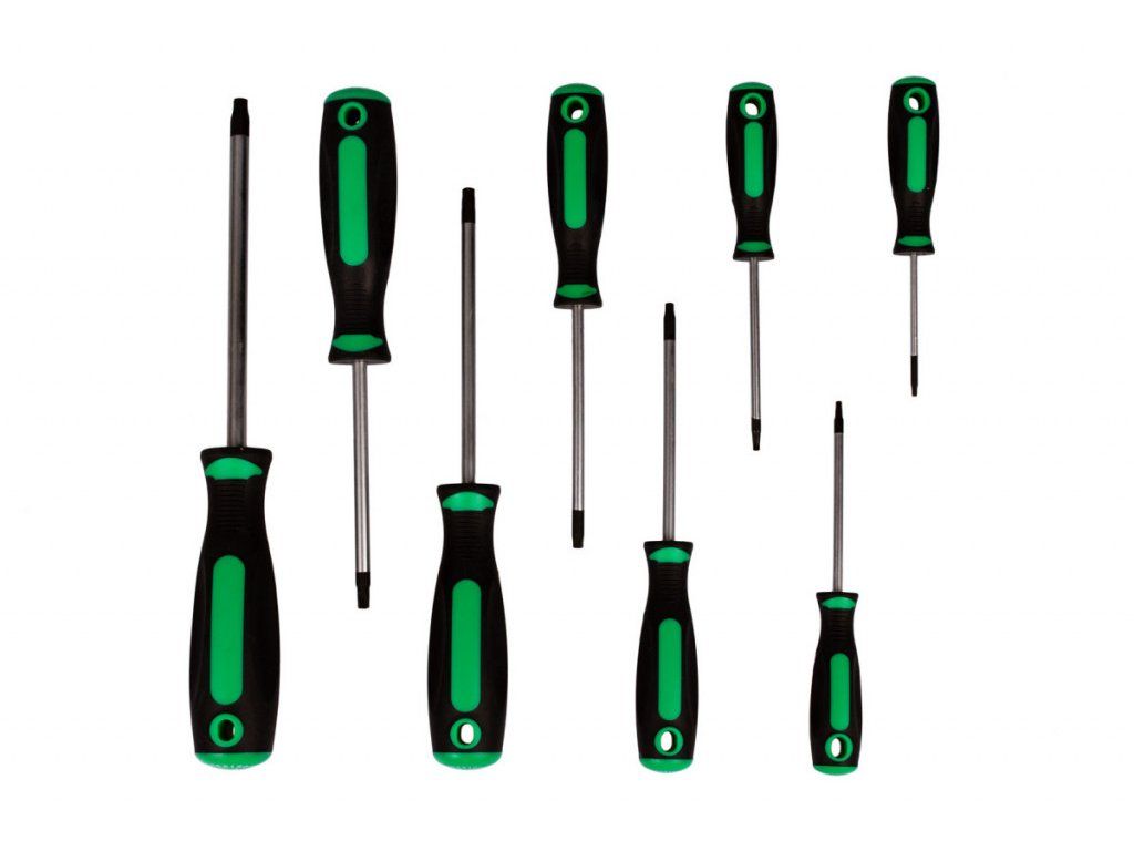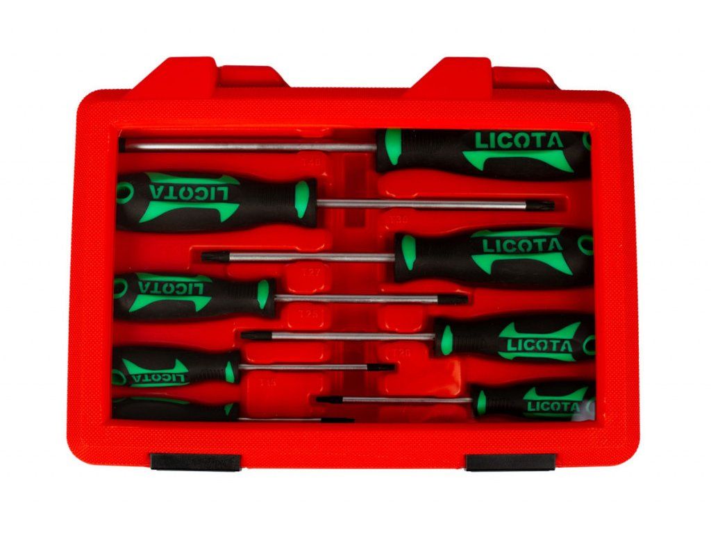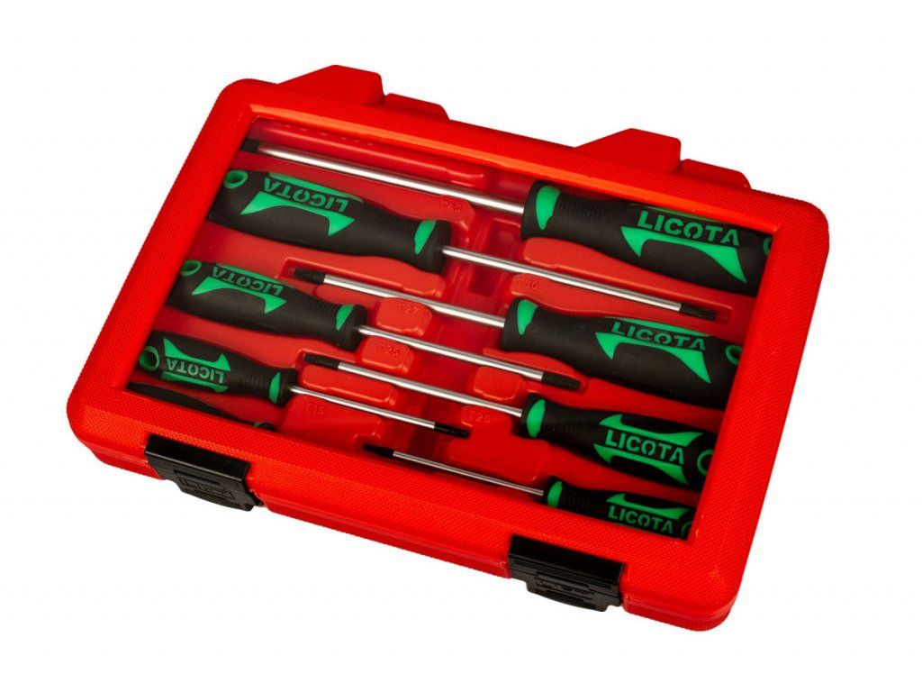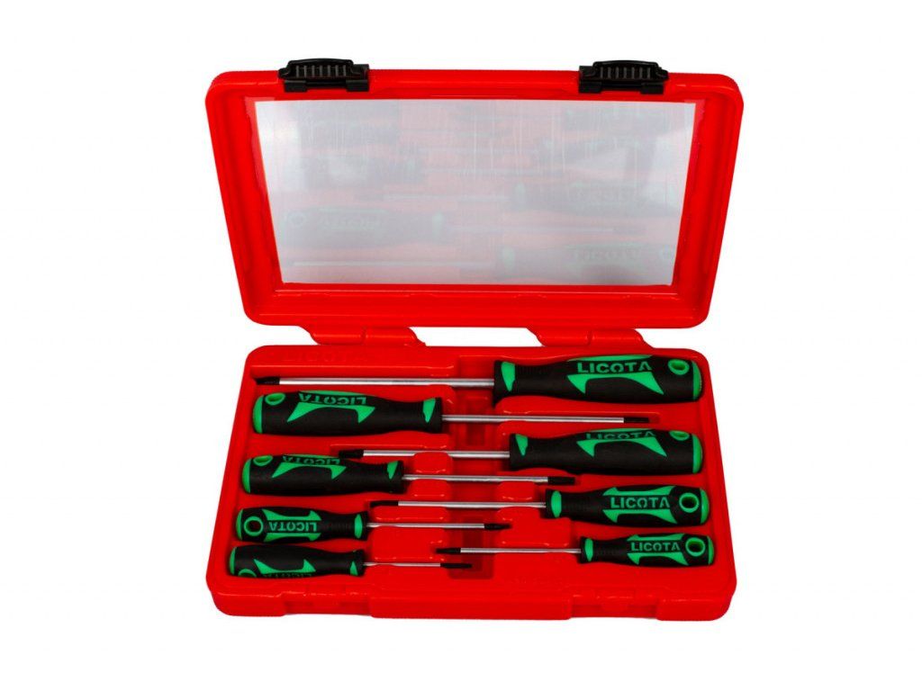 Sada profesionálních magnetických TORX šroubováků v plastovém kufru pro snadný přenos i uskladnění.