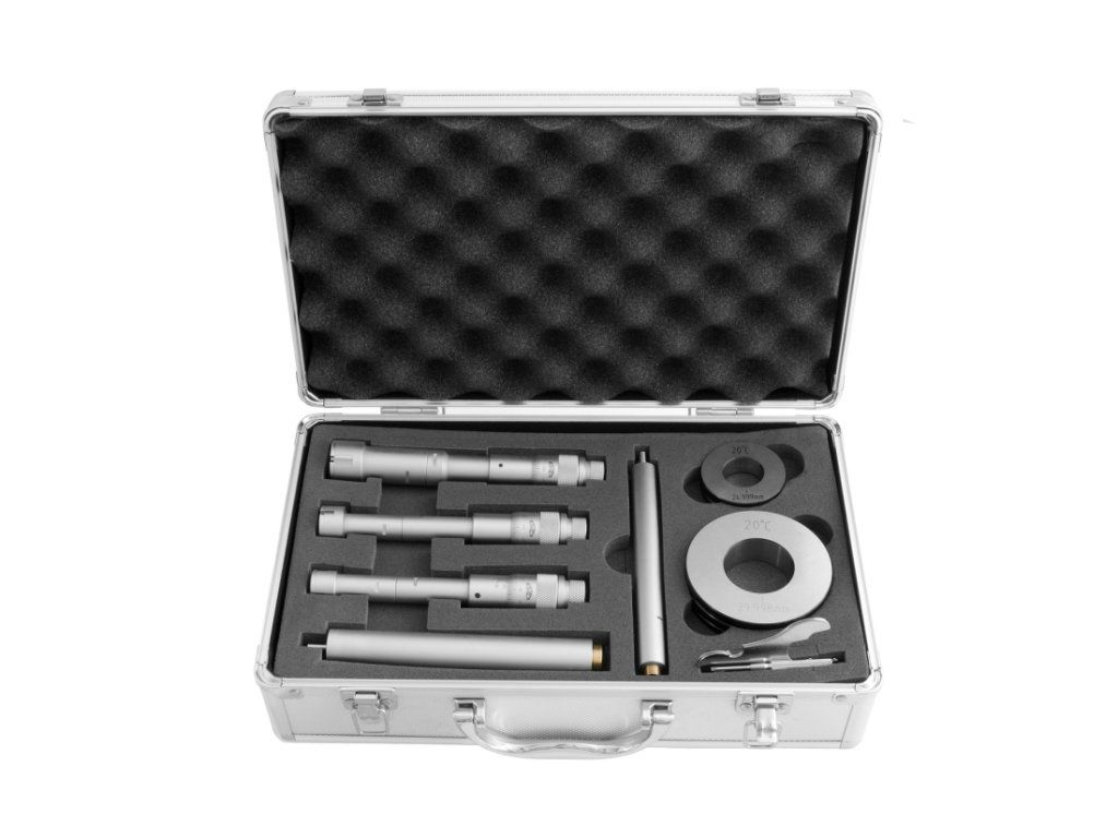 Sada třídotekový mikrometrů (dutinoměrů) KINEX/K-MET 20-40 mm, 0,005mm, DIN 863, IP 54, přesnost 0,004mm. Sestava sady: pr. 20-25, 25-30, 30-40mm, nastavovací kroužek pr. 25, 40mm,prodloužení 150mm.Doplňkové parametry