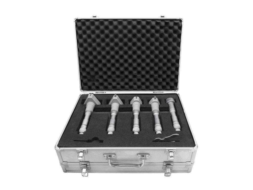 Sada třídotekový mikrometrů (dutinoměrů) KINEX/K-MET 40-100 mm, 0,005mm, DIN 863, IP 54, přesnost 0,005mm. Sestava sady: pr. 40-50, 50-63, 62-75, 75-88, 87-100, nastavovací Kroužek pr. 40, 62, 87mm, prodloužení 150mm.Doplňkové parametry