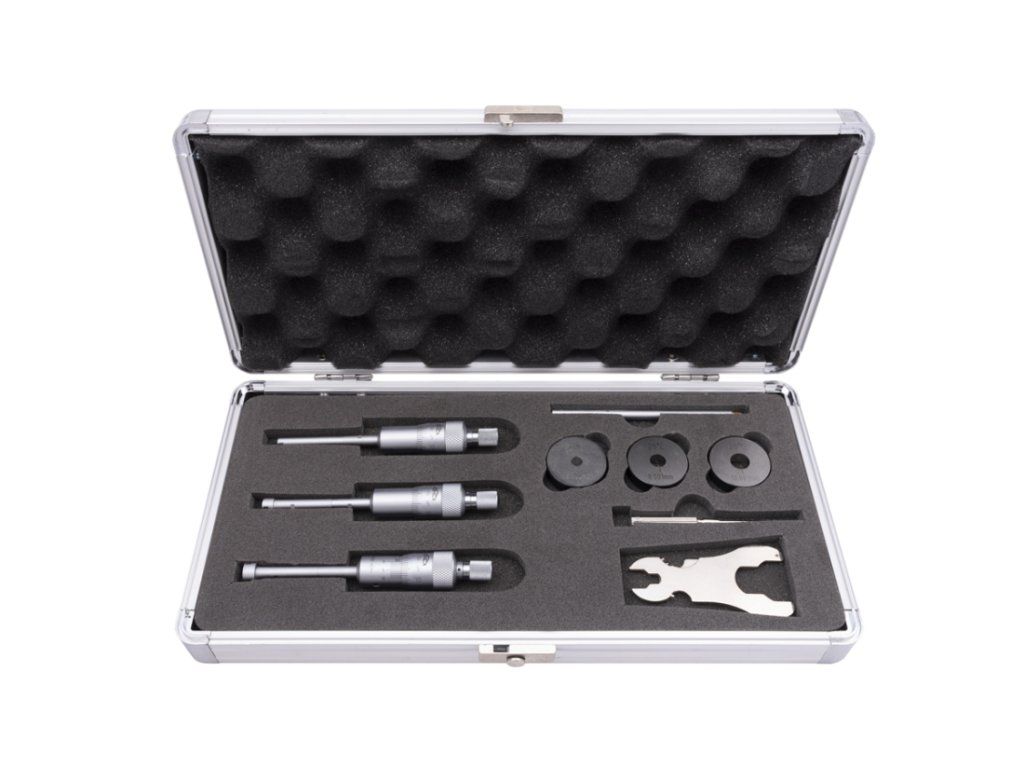 Sada třídotekový mikrometrů (dutinoměrů) KINEX/K-MET 6-12 mm, 0,001mm, DIN 863, IP 54, přesnost 0,004mm. Sestava sady: pr. 6-8, 8-10, 10-12, nastavovací kroužek pr. 6, 8, 10mm, prodloužení 100mm.Doplňkové parametry