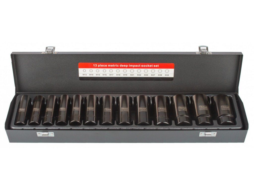 - Nástrčné klíče 1/2": 13, 14, 15, 16, 17, 18, 19, 21, 22, 24, 27, 30 a 32 mm.